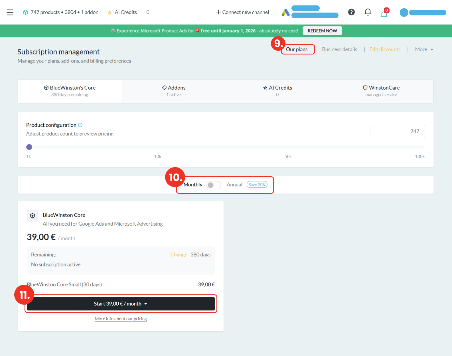 Following this change, each client needs to set up their billing and payment details in their BlueWinston account, or choose the preferred payment method for using the BlueWinston tool.