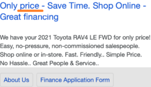 BlueWinston has a feature that tracks these added keywords (which don’t have the BW label – because they weren’t created through BW) and ignores them. This means that it neither pauses nor activates them. The only exception is that BlueWinston sets param1 even for these additional keywords. If you’ve added some keywords, they currently don’t have param1 set, hence the ad displays “Price” in Google search.