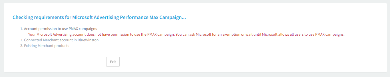 The next step will check if P. Max campaigns can be created for the Microsoft Ads account. There are two options here: