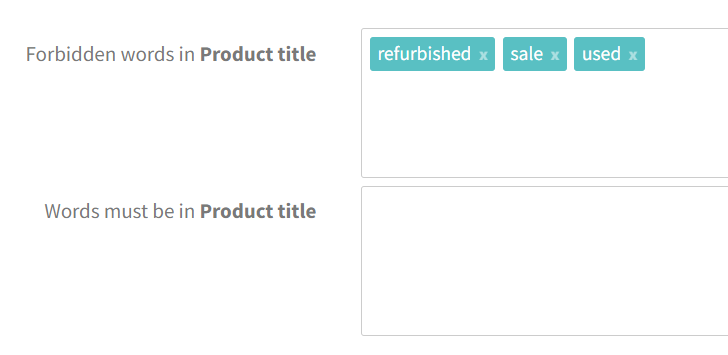 3. Words in product names – filter by words that must or cannot be in the product name in the campaign