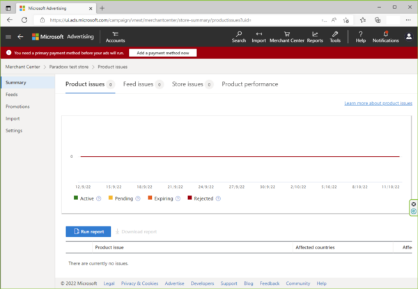 In the first screenshot, you can see the user interface of the Microsoft Ads account, in this case, it is an empty account, without campaigns: