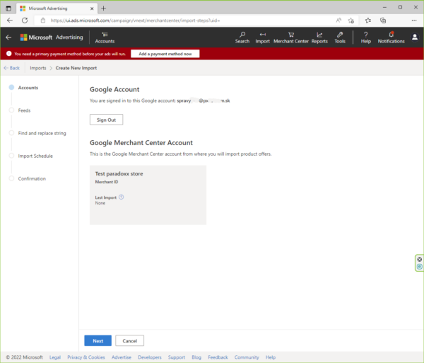 In the next step, you can see a choice to connect the Merchant account that is associated with the given Google Ads account. Click on the Merchant account to link it to your Microsoft Ads account.