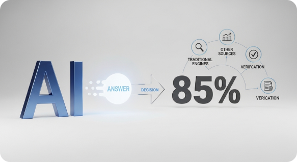 Although AI delivers fast answers, most users (85%) still verify information through traditional search engines or other sources before making a final decision. Search is thus becoming a two-step process, where AI shapes the first impression and traditional search confirms the facts.