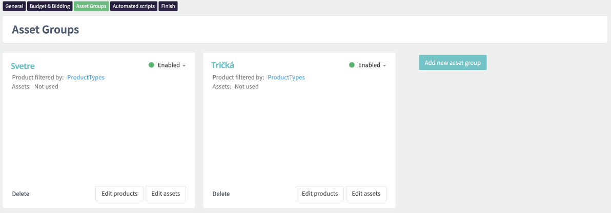 BlueWinston offers advanced filtering so you can select a smaller portion of your products to advertise. Within the advanced product filtering using Asset Groups, you have the ability to create multiple categories such as t-shirts, sweatshirts and jackets. You can use multiple filters at the same time to sort your products, for example category + brand + price. Furthermore, you can filter products by price or by margin. For example, all products priced between 20 € and 30 € or 10% margin and advertise products that have a margin between 50 € and 100 €. By taking advantage of advanced filtering, you will get higher efficiency Performance Max campaigns.