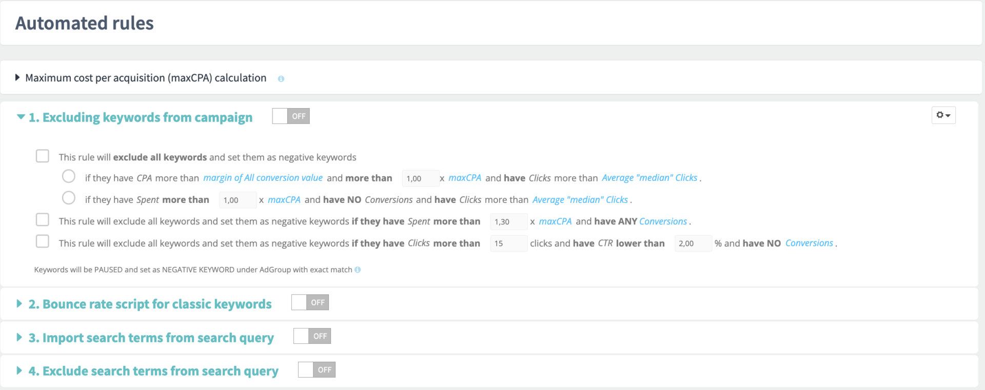 BlueWinston uses two types of scripts to optimize Performance Max campaigns. You can choose a script to automatically pause low-performing products. For example, you can set it to automatically pause if a product spends more than 20% of its price. Conversely, you can set the script to automatically increase the budget when the campaign performs well.